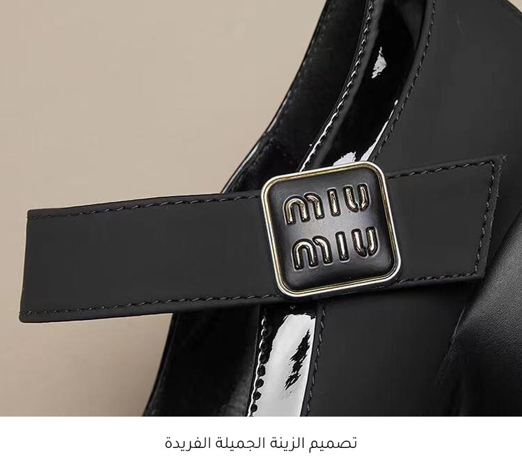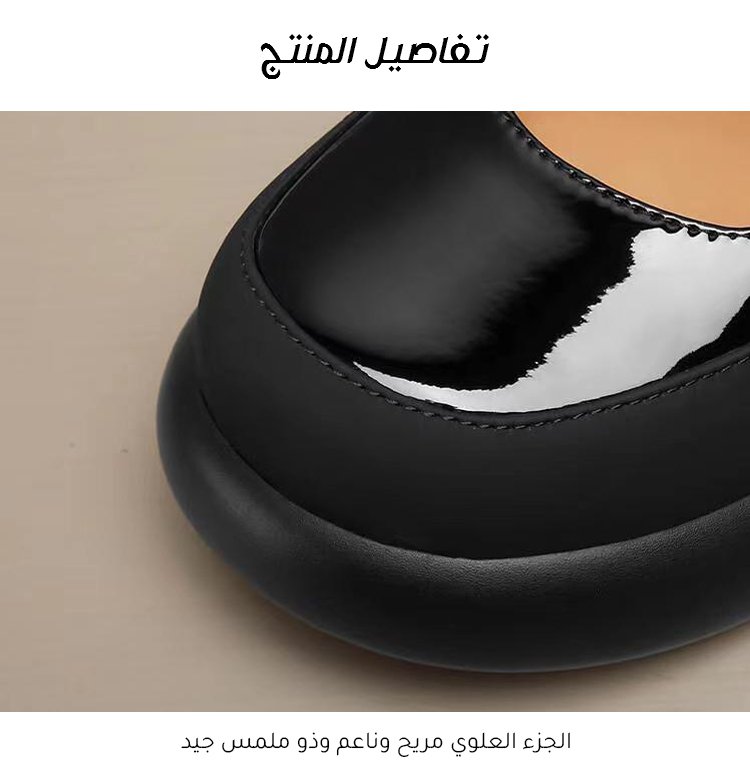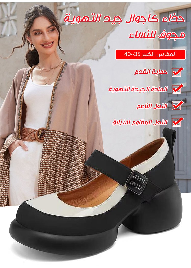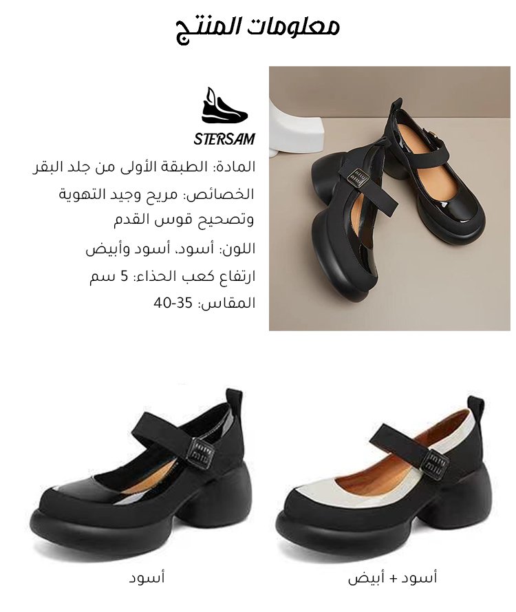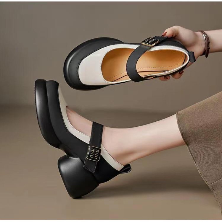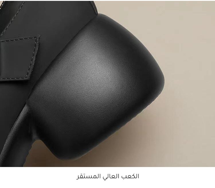 حذاء جلدي نسائي عصري بكعب مربع وألوان متباينة